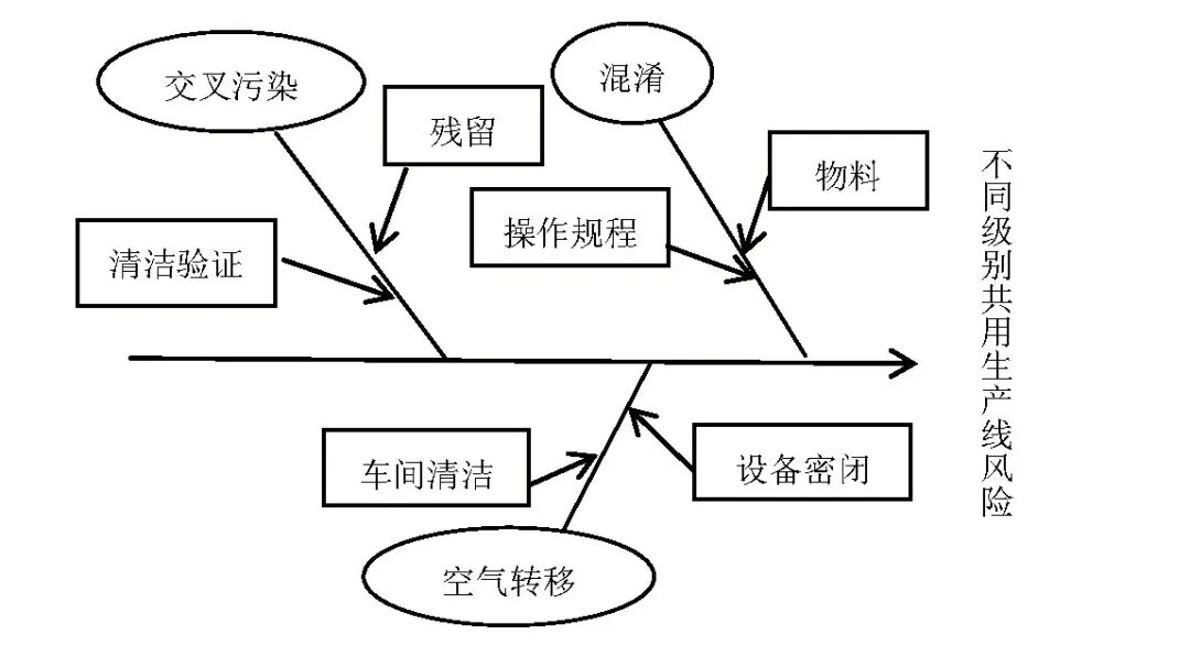根据产品特性,在风险评估的初始阶段采用鱼骨图(石川图)来进行识别,找到两种级别产品共线存在的潜在风险,如图1所示。