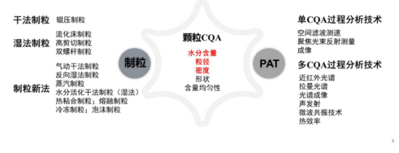 粒度是颗粒最重要的特性之一,颗粒粒度分布是制粒过程中的一个关键的质量属性,会影响颗粒的流动性和可压性等PSD。不同的颗粒尺寸对应不同的颗粒体积,会影响最终制剂的质量和含量均匀性。PSD可以通过FBRM和SFV直接预测。根据颗粒CQA检测指标,可以分为单CQA过程分析技术和多CQA过程分析技术。对于要求检测粒径或水分的工艺,可以采用单CQA过程分析技术;如需在线检测水含量、粒度分布、原料药固体和制粒过程终点等多应用时,就需要采用多CQA过程分析技术。