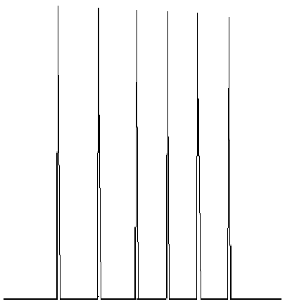 气泡峰是指携带气泡的流动相通过检测器时得到的响应值;这里的气泡可能是流动相中释放的空气,也可能是有机相遇水放热而会释放的有机溶剂分子;气泡峰往往具有较高的响应值,区域宽度仅为数秒,出峰时间和相应值比较有规律(如下图)。通常只有光谱型检测器才会出气泡峰。