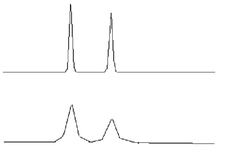 柱性能下降的一个重要现象就是在保留时间基本不发生变化的情况下,色谱峰的区域宽度明显增大(如下图)。