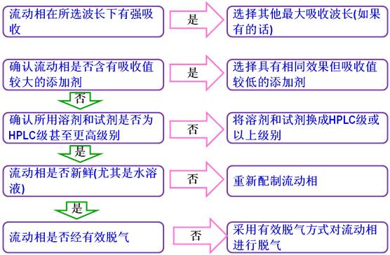噪声升高时,若流动相没有问题,应排查仪器的问题