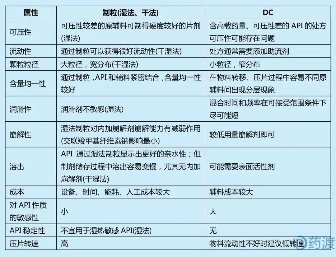 通过湿法制粒压片和直接压片的工艺路线对比,粉末直接压片是将药物的粉末与适宜的辅料分别过筛并混合后,不经过制粒(湿颗粒或干颗粒)而直接压制成片。直接压片更能够保证产品质量,提高生产效率,且工艺简单,节省原料。剂粉末直接压片法除了在普通片剂生产中应用外,在新型制剂如分散片、速释片(包括速崩片和速溶片)、缓释片等的应用中,也显示出不可比拟的优势。当然,粉末直接压片相对于干法和湿法相比,对于原料药、辅料及工艺也有不同的要求。