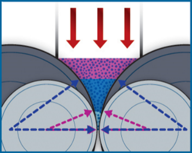 在设定的力下,根据粉体输送到压轮的量,粉末将被压实到预设定的片材厚度,精确的过程控制是获得均匀颗粒性质的关键。
