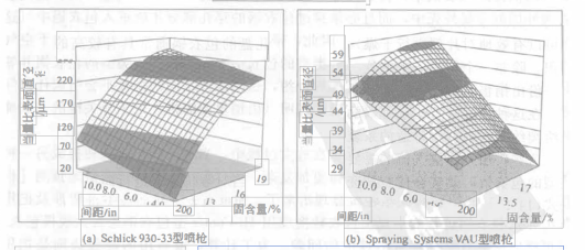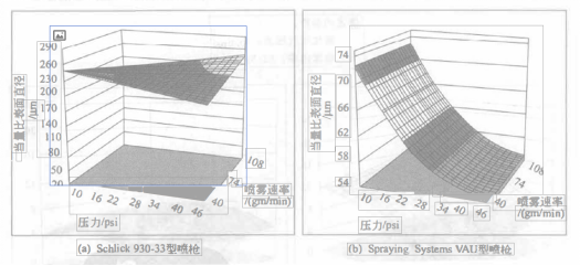 图3 喷枪的种类、雾化空气压力和喷雾速率对雾化液滴大小产生的影响