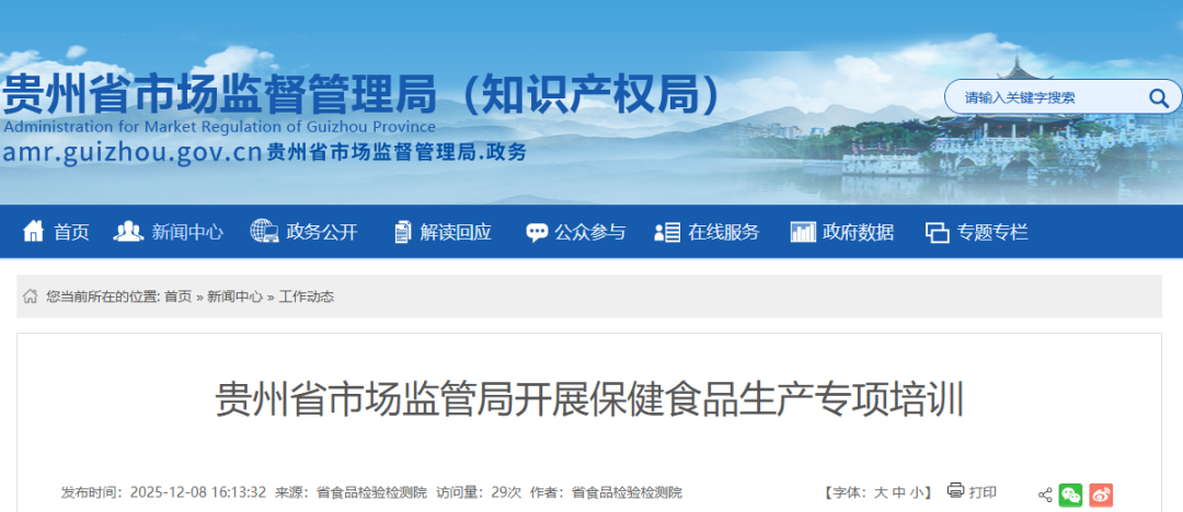 近日,贵州省市场监管局牵头、省食品检验检测院承办的2025年全省保健食品专项培训班在贵阳举行。全省90余名保健食品生产及备案试点企业质量负责人、生产检验骨干参加培训。