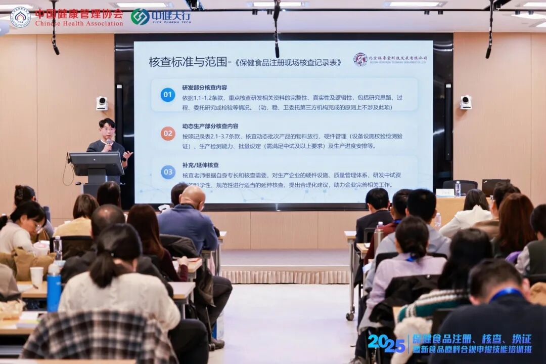 2025年11月22日,由中国健康管理协会植物营养与健康分会主办、北京中健天行医药科技有限公司承办的保健食品注册、核查、换证暨新食品原料合规申报技能培训班在北京落下帷幕。我司技术厂长丁亚光受邀担任授课嘉宾,与国家市场监管总局审评中心、国家食品安全风险评估中心等部门一线审评专家同台开讲。